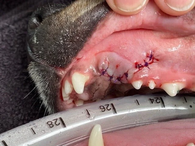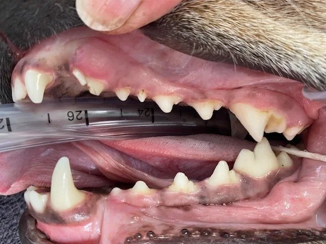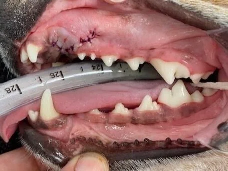 Fractured upper left canine.